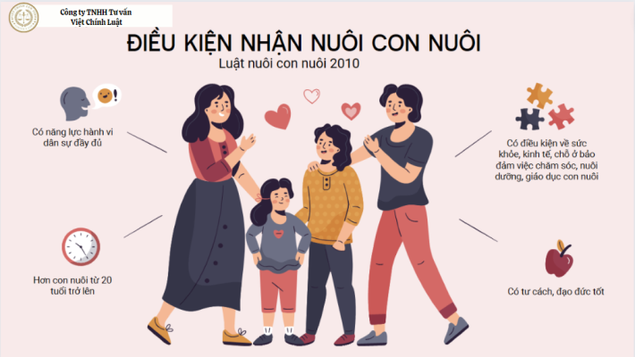 – Có điều kiện về sức khỏe, kinh tế, chỗ ở bảo đảm việc chăm sóc, nuôi dưỡng, giáo dục con nuôi;