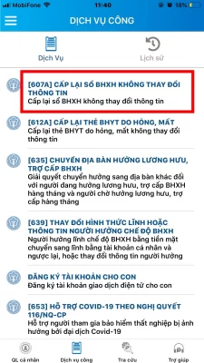 3. Chọn Cấp lại sổ Bảo hiểm xã hội không thay đổi thông tin.