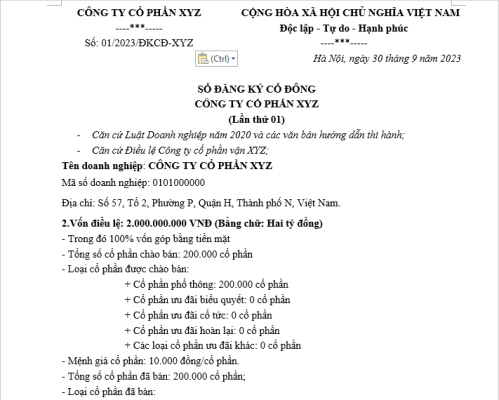 MẪU SỔ ĐĂNG KÝ CỔ ĐÔNG MỚI NHẤT