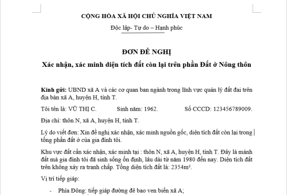 Mẫu đơn đề nghị xác nhận nguồn gốc đất