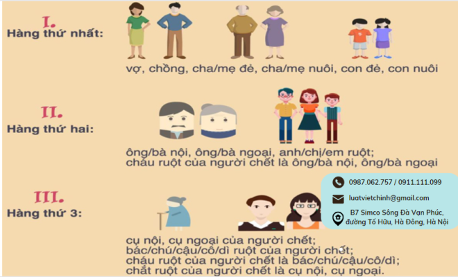 – Hàng thừa kế thứ ba bao gồm: cụ nội, cụ ngoại của người đã mất; bác ruột, chú ruột, cậu ruột, cô ruột, dì ruột của người đã mất; cháu ruột của người đã mất mà người đã mất là bác ruột, chú ruột, cậu ruột, cô ruột, dì ruột; chắt ruột của người đã mất mà người đã mất là cụ nội, cụ ngoại.