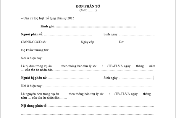 MẪU ĐƠN PHẢN TỐ