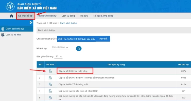 2. Chọn cơ quan Bảo hiểm xã hội.