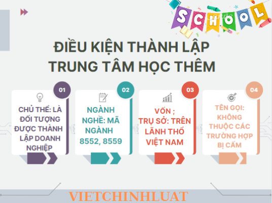 Với nhu cầu bổ sung thêm nền tảng kiến thức cho con em mình, ngoài việc học tập trên lớp, nhiều phụ huynh còn đăng kí học thêm cho con ở các trung tâm bên ngoài. Nắm bắt được nhu cầu đó, hiện nay có rất nhiều các trung tâm dạy thêm đã ra đời. Vậy điều kiện, thủ tục và trình tự để thành lập trung tâm dạy thêm như thế nào?