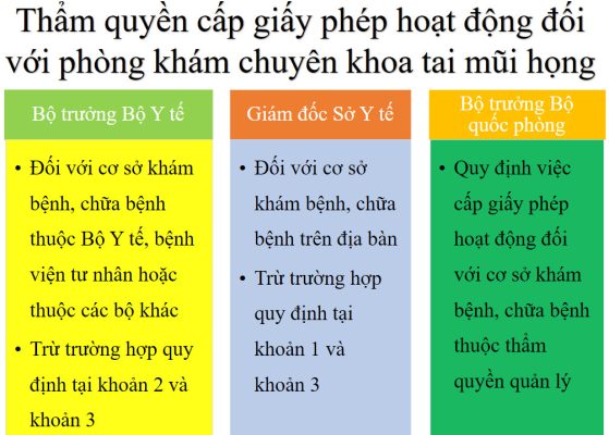 3. Thẩm quyền cấp giấy phép hoạt động đối với phòng khám chuyên khoa tai mũi họng